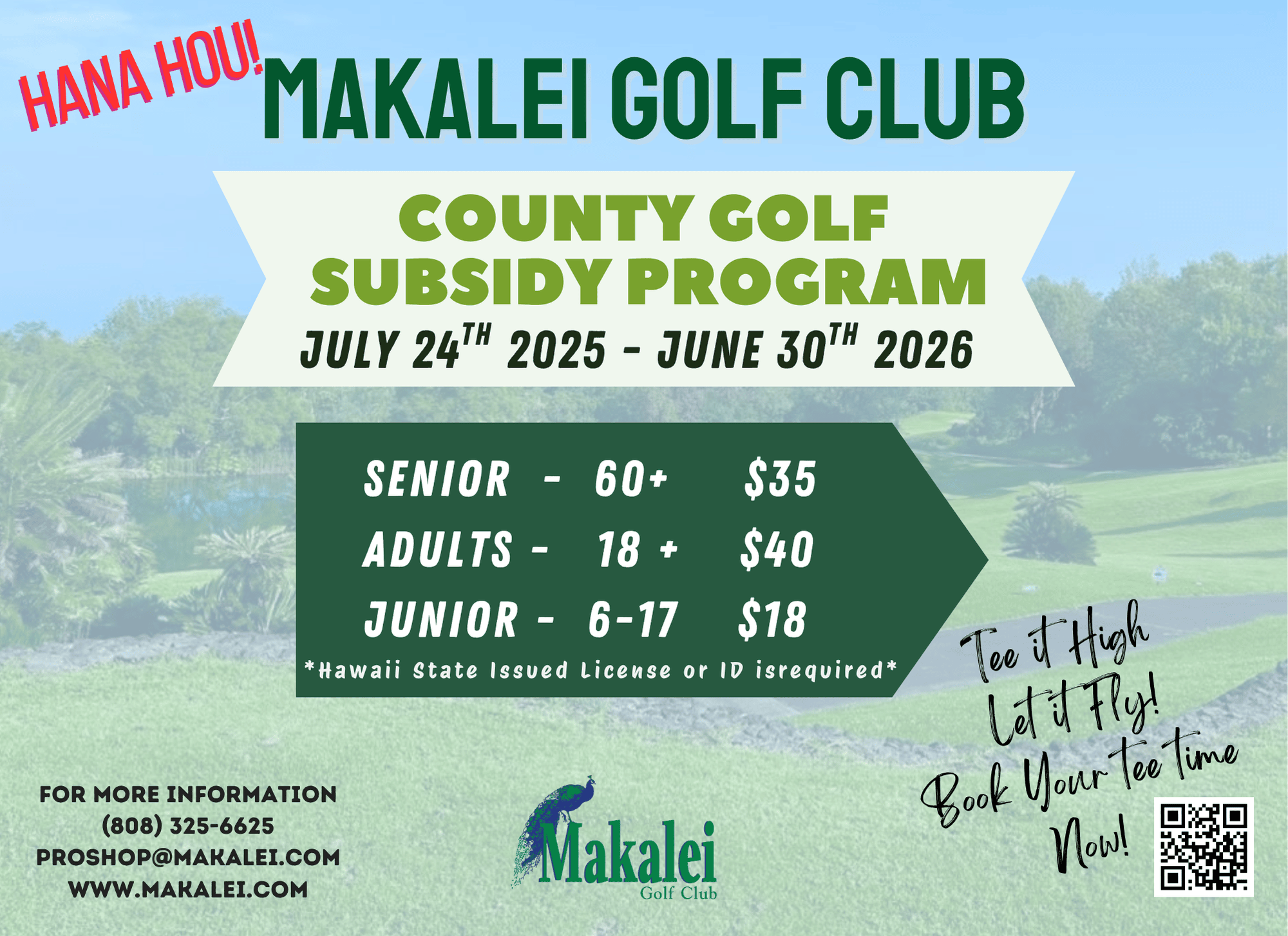 Aloha from Makalei Golf Club...an experience long remembered! Makalei is truly one of the most unique golf courses in the world. The Kona golf course encompasses all of the serenity and challenge that the Island of Hawaii has to offer.